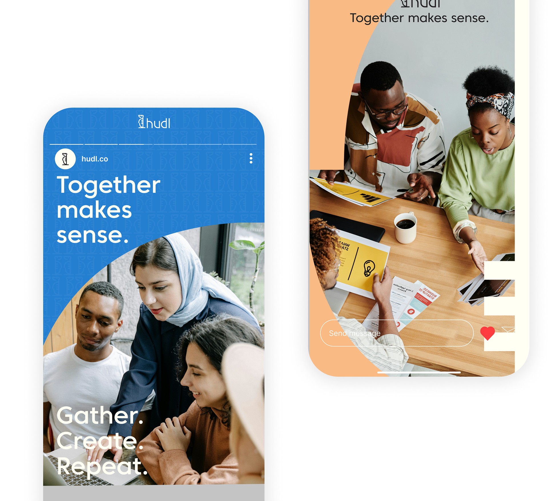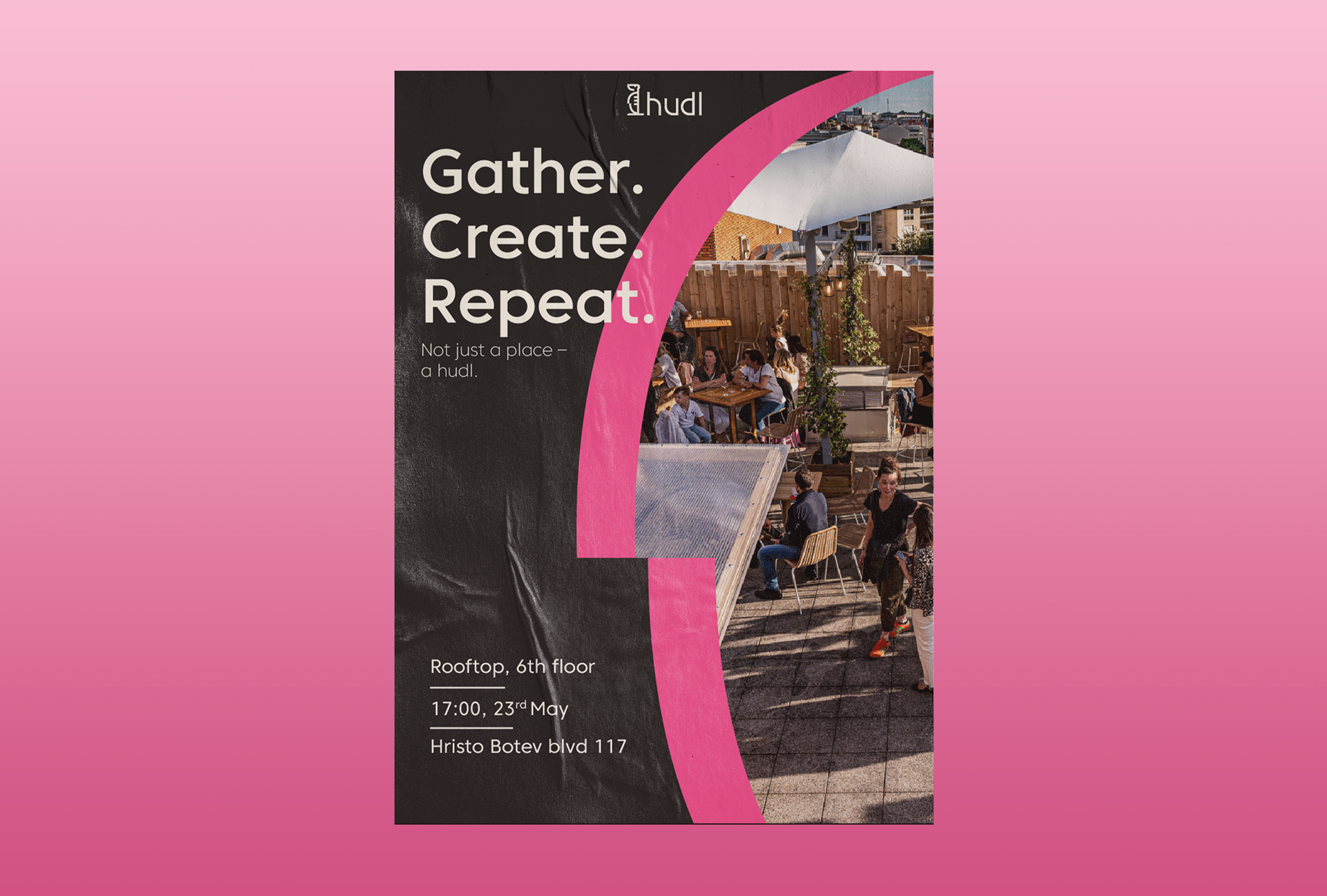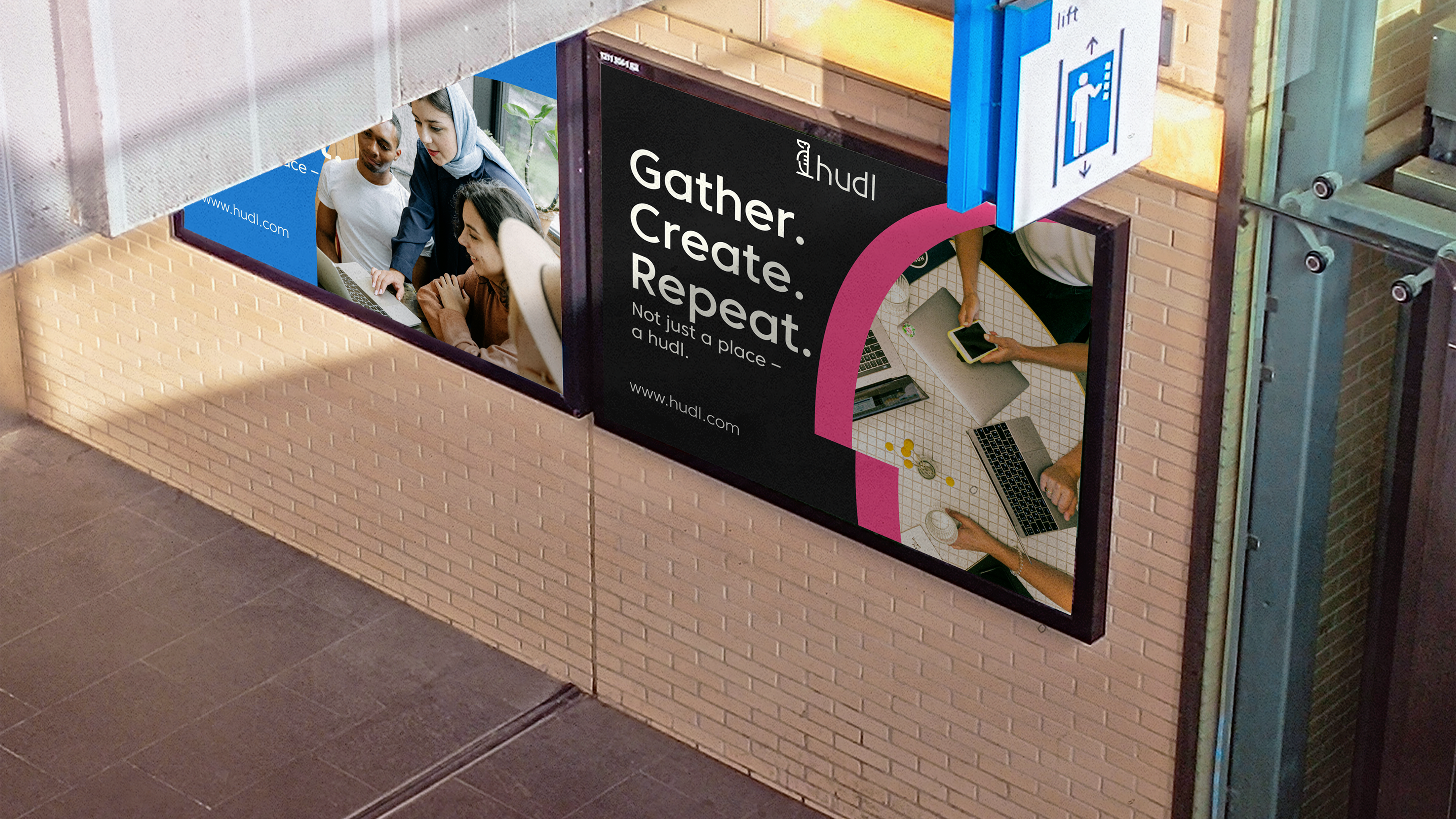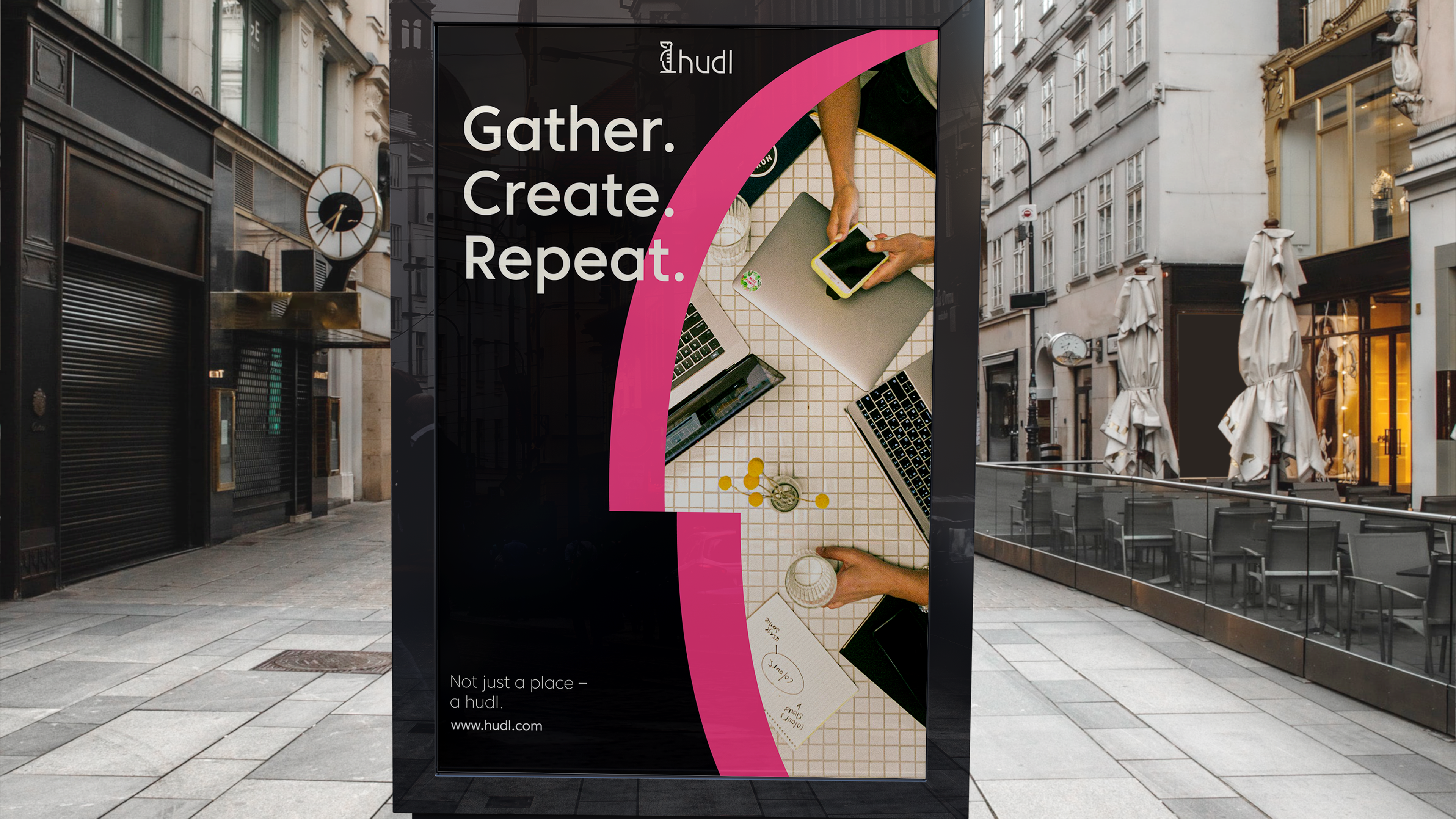 University project for a coworking space for an established brand. The "Gather. Create. Repeat" campaign highlights the core value of collaborative success. Key visuals feature candid, documentary-style photography of diverse individuals working, brainstorming, and unwinding in the space—always in connection with others.